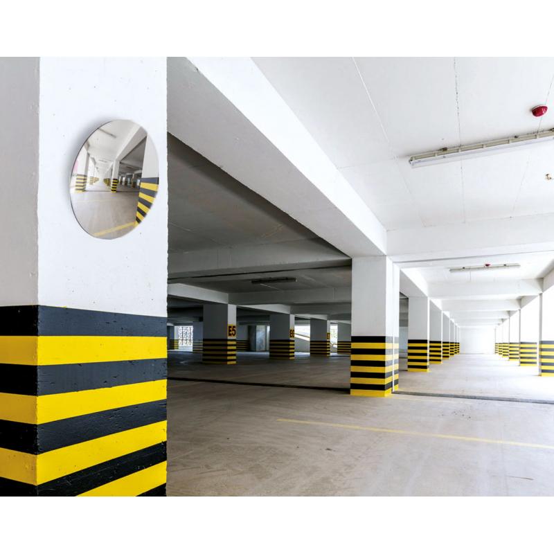 A simple and cost-effective solution to eliminate blind spots. This mirror provides 2 metres of visibility between the user and the mirror.
