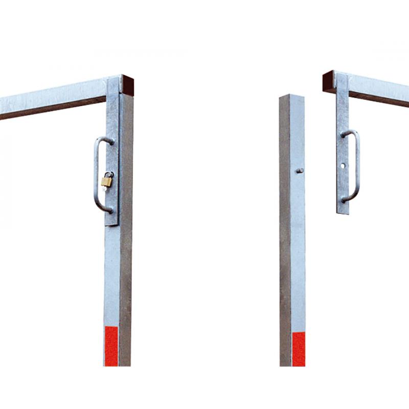 Swivel height restrictor made of steel, with swivelling top crossbar on one of the two uprights..