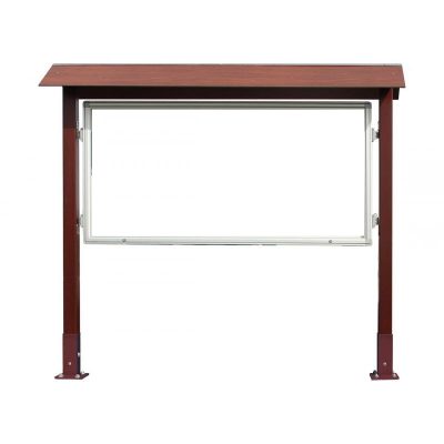 Round ø 76 mm posts: 2 round ø 76 mm dove-tailed posts either silver anodised or painted with black lacquered steel top caps. Post kit contains 4 cast aluminium dove-tailed clamps for easy installation with no drilling required. Notice board adjustable in height.