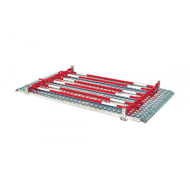 Guardrails: red lacquered finish with 6 white reflective strips each.